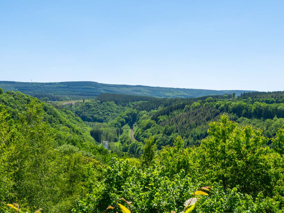 Je vindt het uitzichtpunt langs de N633, de weg die slingert tussen Remouchamps en Trois-Ponts.